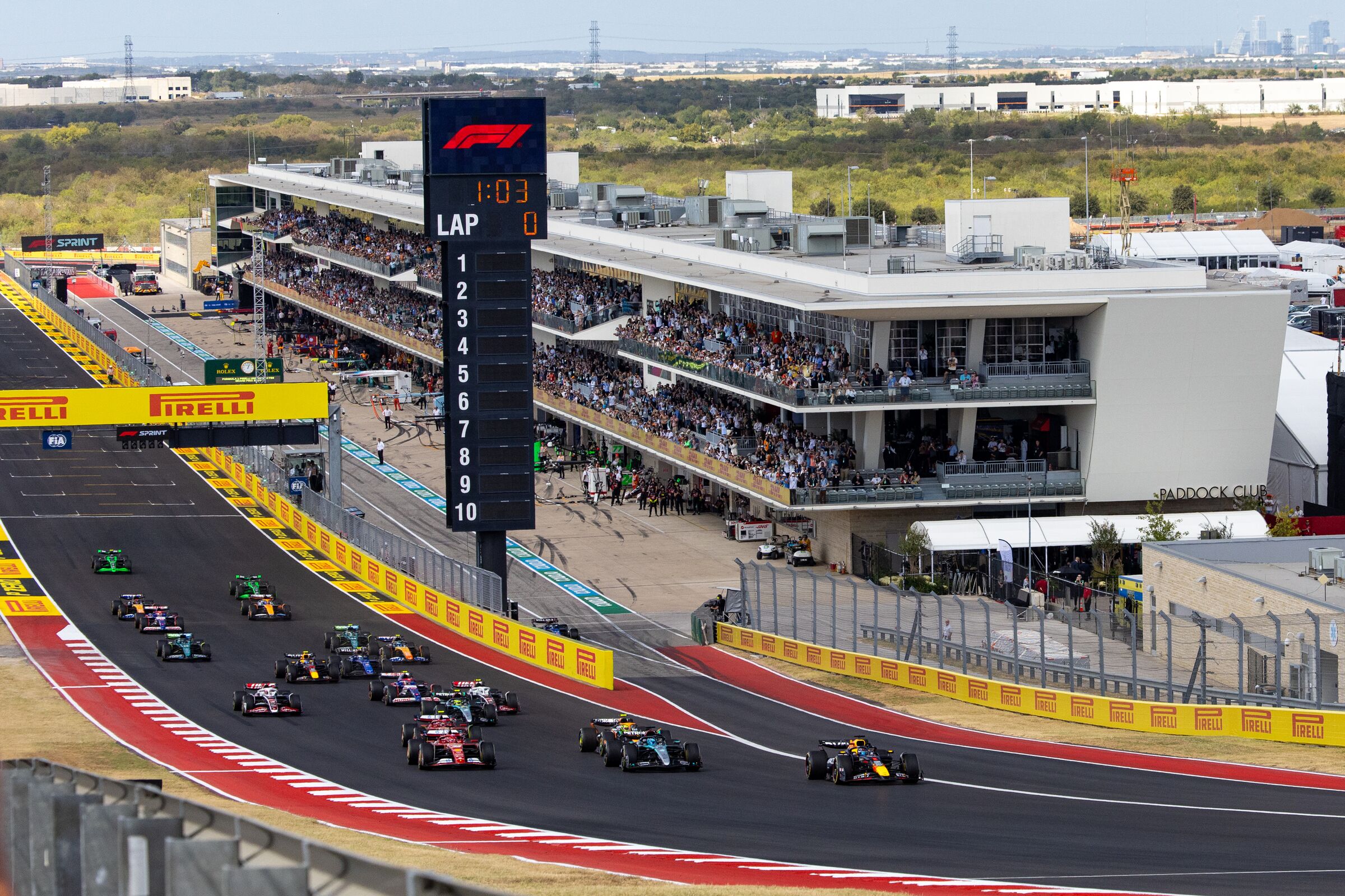 The Turn 1 Grandstand stands at the crest of a hill and offers one of the greatest views in all of F1, stretching as far as Austin itself. The views from here comprise the Main Straight, the Pit Lane exit and clear sights on the track’s first 3 turns.